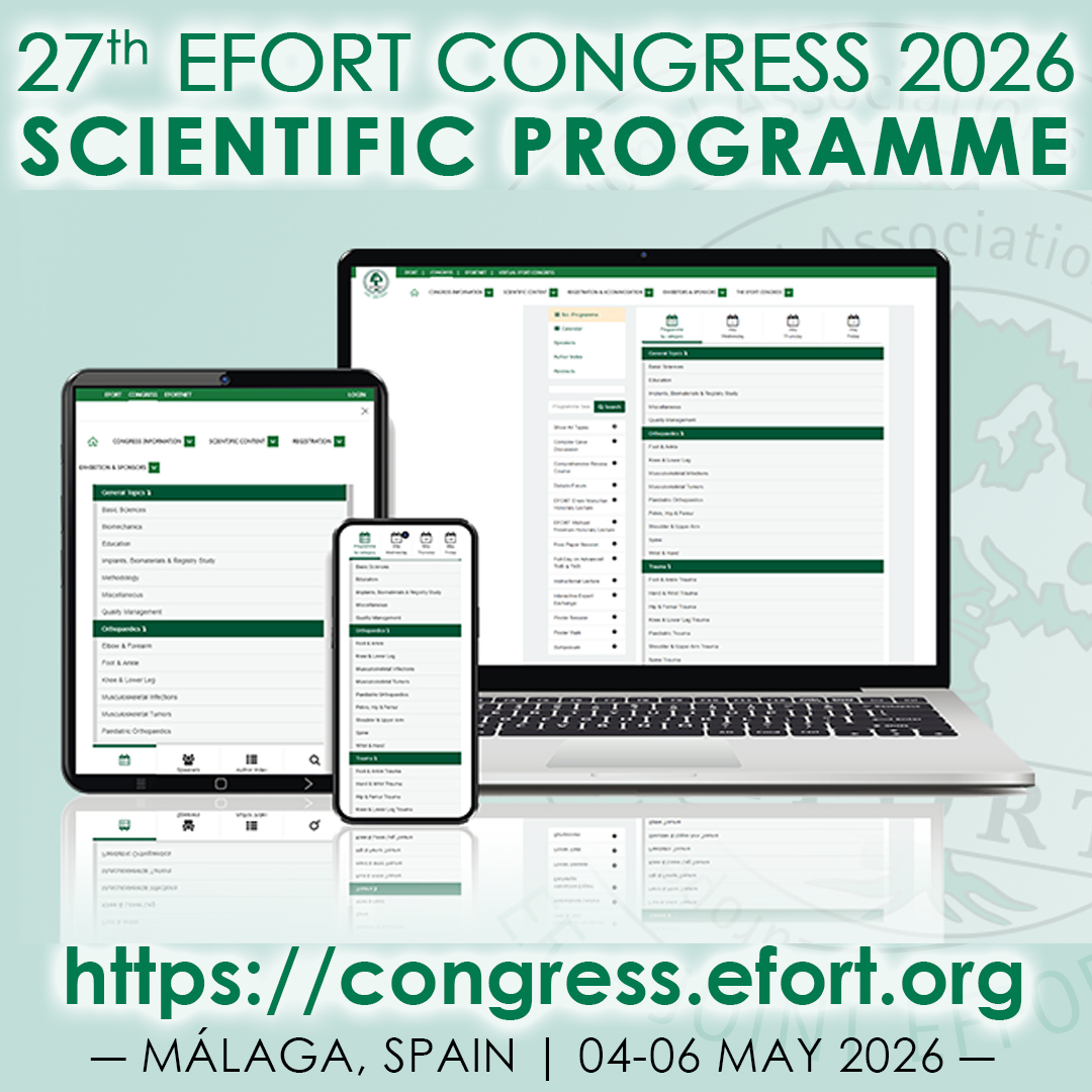 All abstracts received for the EFORT Congress Málaga 2026 Scientific Programme have been reviewed by our EFORT Science Committee appointed topic experts through our abstract submission and management online platform: https://scientific.efort.org/efort2026.