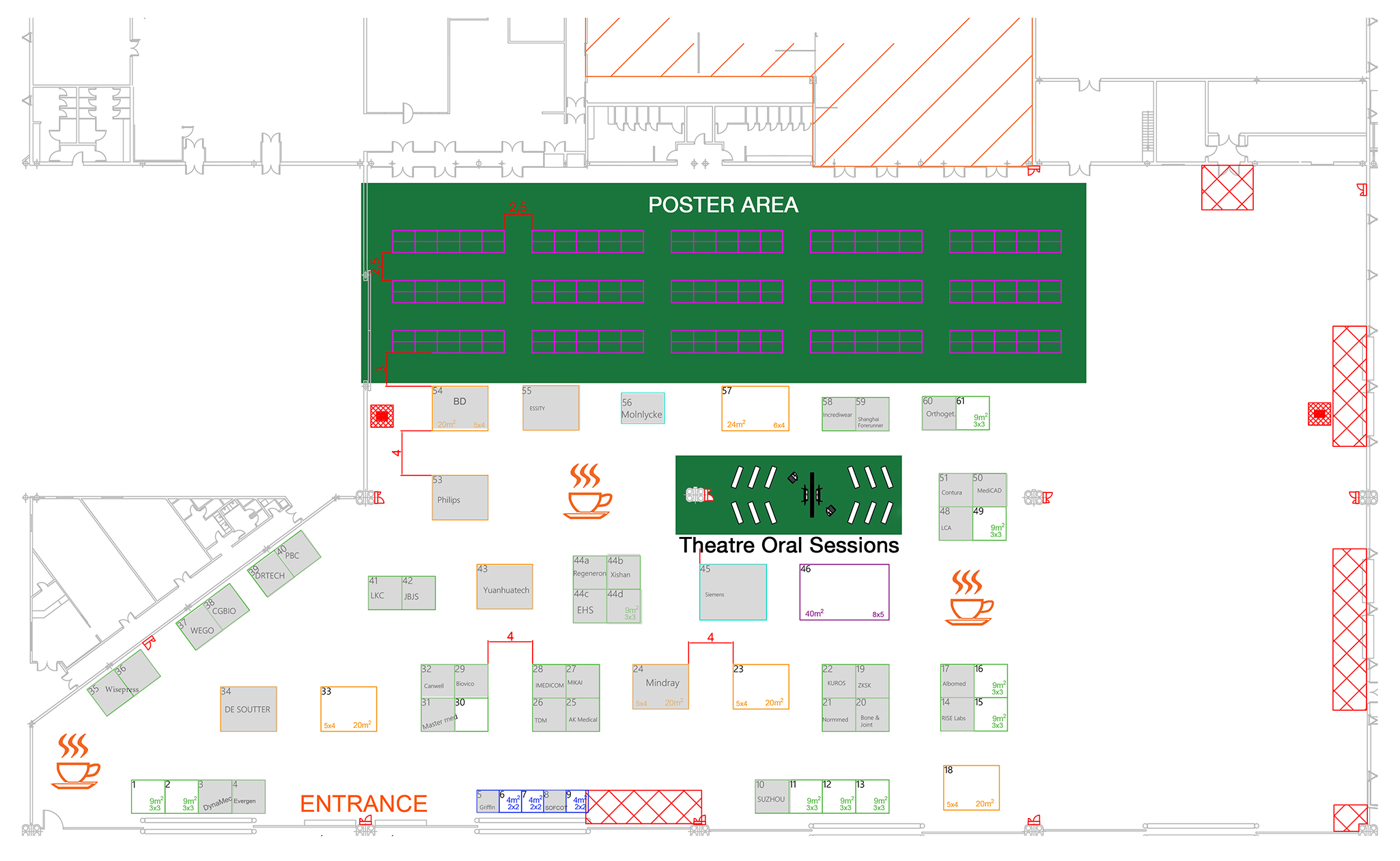 To book an exhibition space, please fill in the order form to secure your preferred location in the below floorplan.