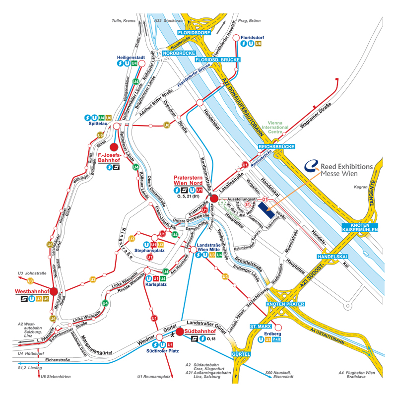 - Via metro line U2 from Karlsplatz direction Seestadt, exit at the station Messe/Prater. The station Messe/Prater is just a short walk from Reed Messe or;